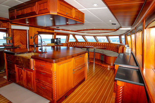 There is luxury and then there is pure elegance. There is not another yacht charter boat like this in the Northern Part of Florida. The beauty is beyond most peoples imagination. Match Booked woodwork throughout, Elegant lounge area with panoramic windows, large sofas, entertainment center, and two formal dining tables outside, plus a formal dining area inside towards the bow with bar, Viking Oven, etc.