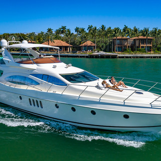 70’ Johnson Yacht – A stunning vessel perfect for entertaining, featuring multiple decks, lounges, and a full indoor cabin.